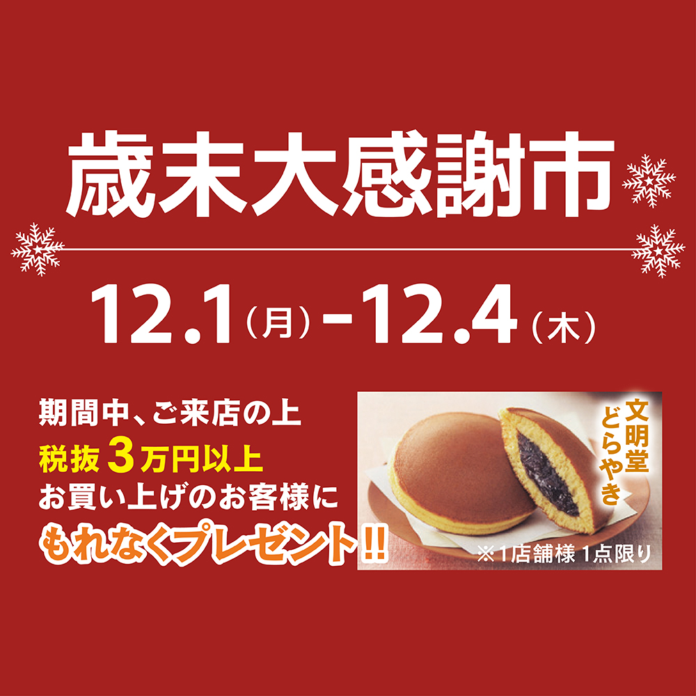 期間中、ご来店の上、税抜3万円以上お買い上げのお客様に
