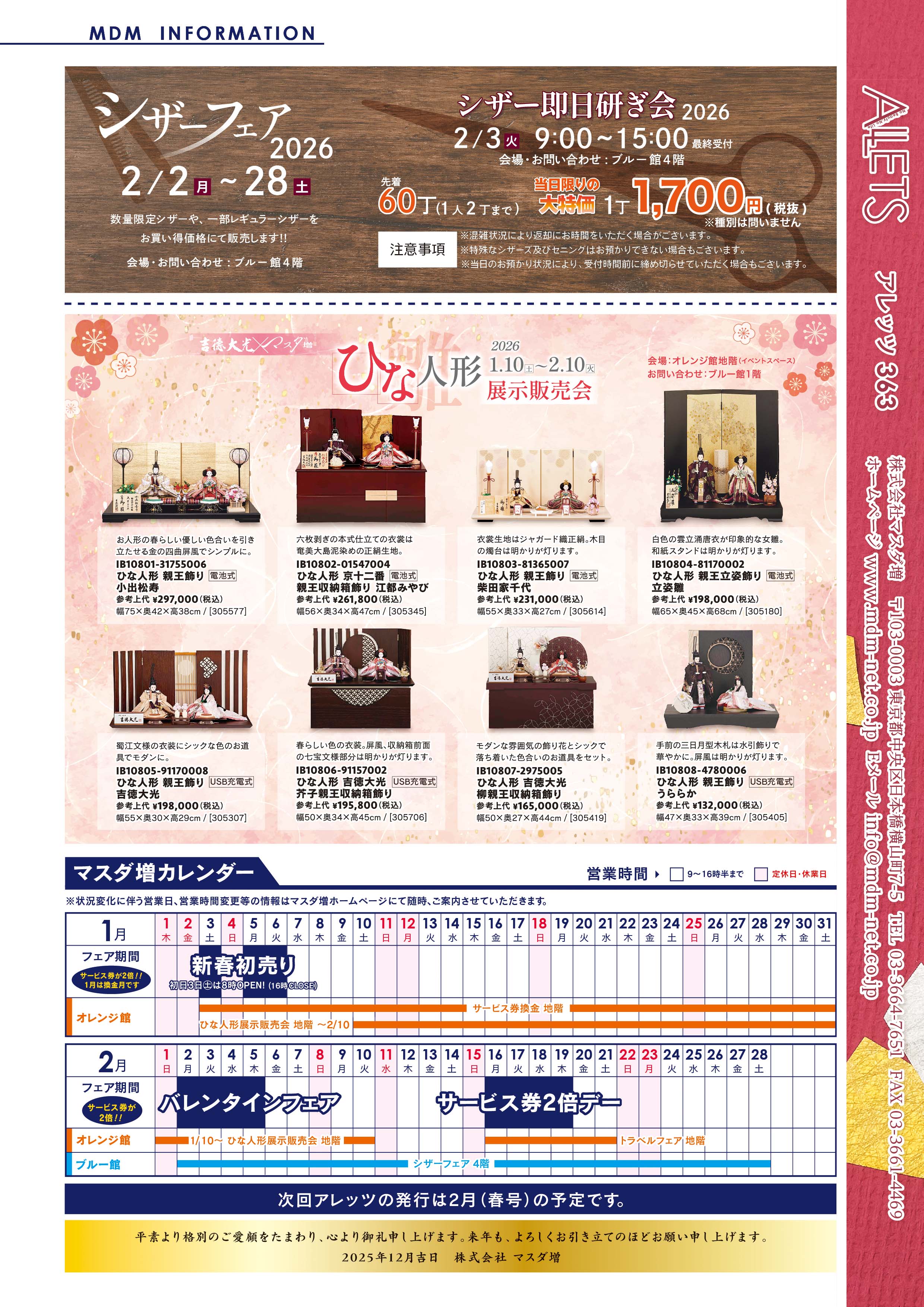次回アレッツの発行は、2026年 2月 (No.364/春号)予定です。